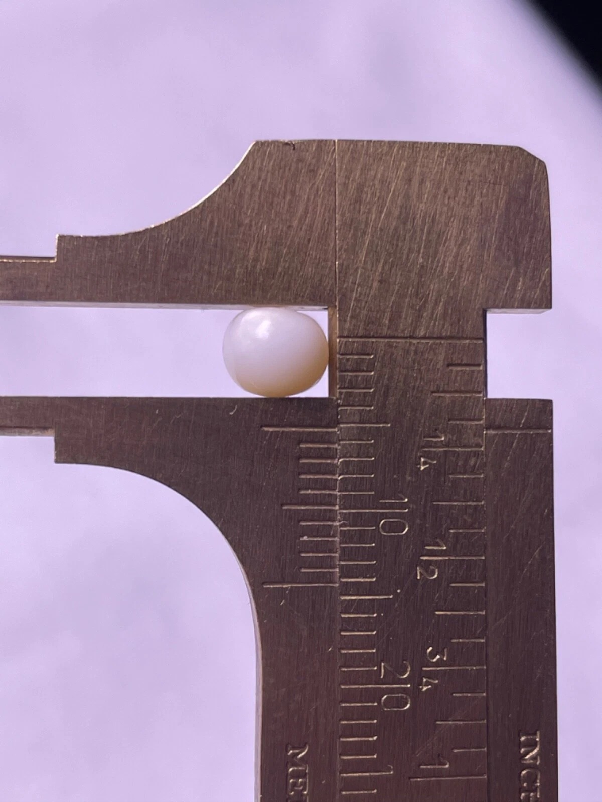 This 1.6ct round white natural conch pearl is a timeless gemstone, perfect for adding elegance to any jewelry collection. The pearl formation process results in a unique and organic beauty that is both rare and cherished. Its classic round shape and white hue make it an ideal candidate for a variety of designs, from traditional pearl earrings to unique pendant creations. The conch pearl’s natural origins ensure that each piece is one-of-a-kind, with its own subtle nuances and variations. The gemstone’s substantial weight of 1.6 carats speaks to its quality and size, making it a noticeable and captivating addition to any setting. Whether used in fine jewelry or as an addition to a gemstone enthusiast’s collection, this pearl is sure to be a treasured asset.